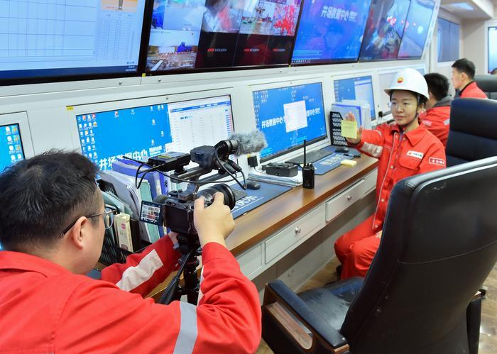 9月24日,青海油田新闻中心参赛选手正在西部钻探准东钻井公司天湾3井现场控制室进行拍摄。黄智明 摄