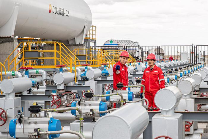 新疆油田煤电联营一体化碳捕集项目是响应国家“低碳、绿色、经济”战略,助力新疆油田低碳发展的中国石油首个百万吨级电厂烟道气碳捕集项目,也是国内第二套百万吨级电厂烟道气碳捕集项目。国庆期间,项目现场一派繁忙。正在监督冷却塔施工的煤电联营一体化项目经理部员工姜波宇拍着身上的尘土说:“目前我们是24小时轮班作业,为确保11月底前完成吸收塔焊接。董事长关注咱们这项目,抢抓时效焊接施工,再累都值!而且项目建成后,可实现年捕集二氧化碳100万吨,相当于5.3万亩森林的年固碳量,捕集的二氧化碳用于驱油,可增产原油5万吨,能形成‘减排—增油’的良性循环。”