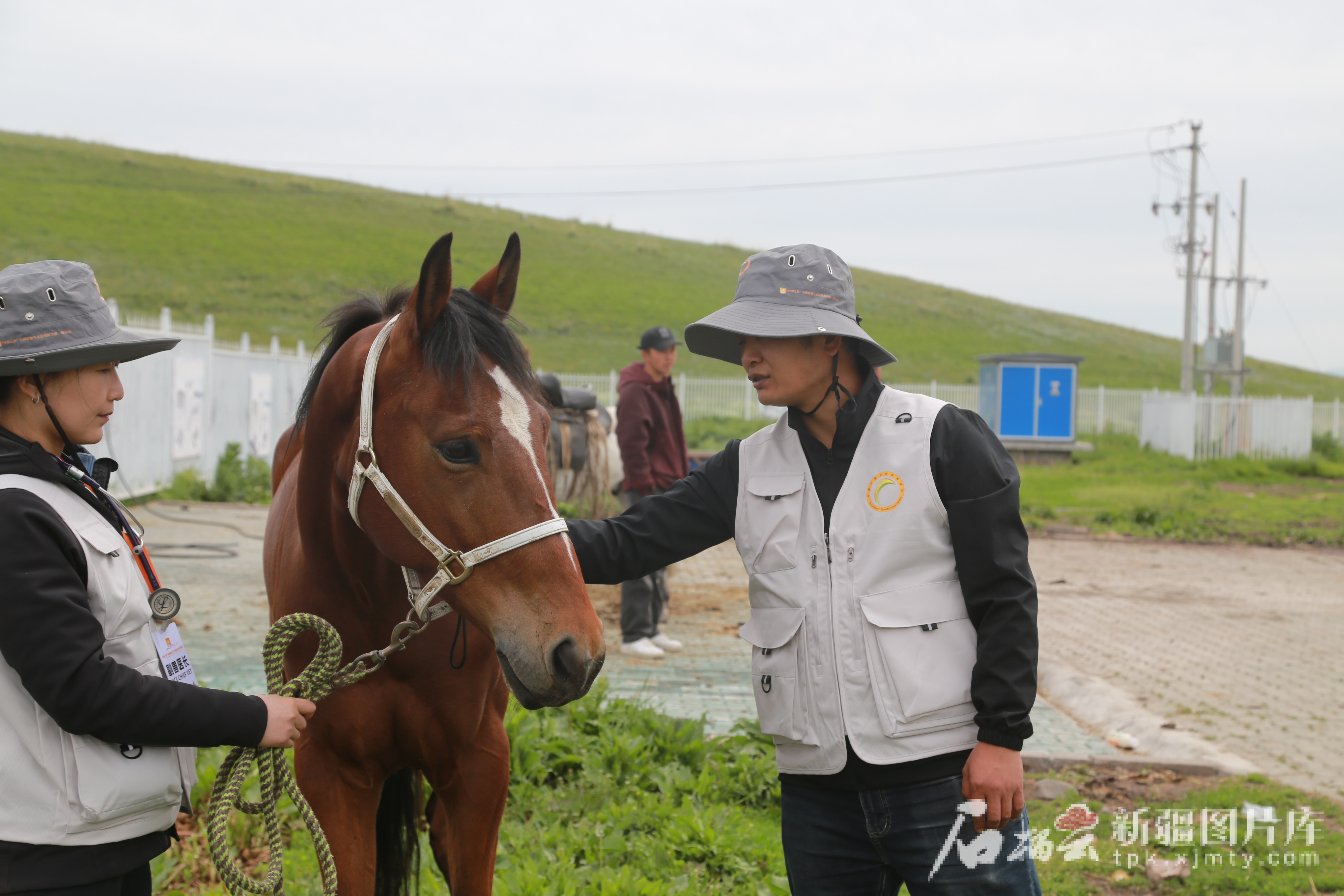 5月28日,马玉辉(右)正在检查即将参加比赛的马匹。天山网-新疆日报记者 宋卫国摄