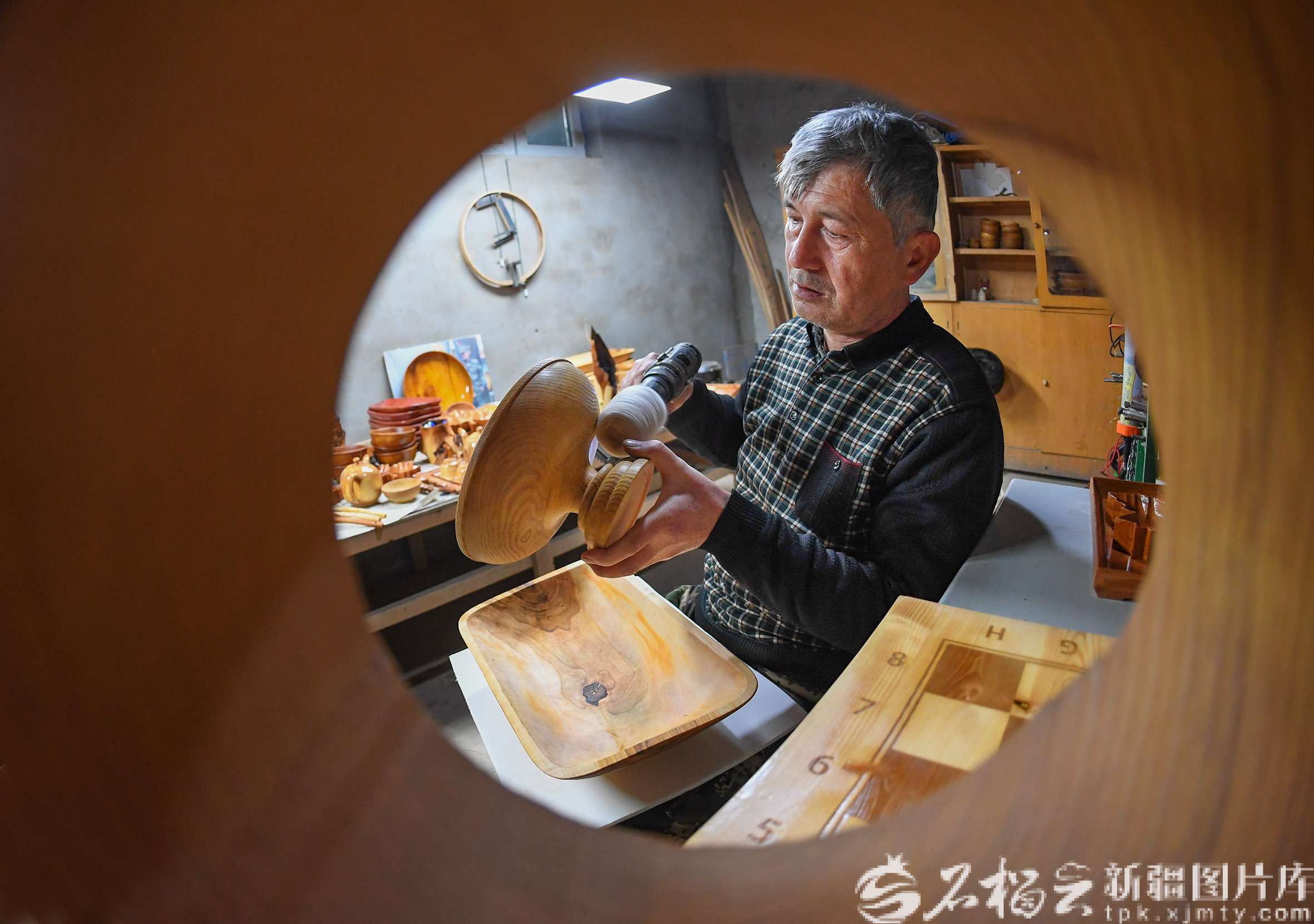 “木器雕刻不仅是谋生手艺,更是各民族文化交融的见证。”艾尼江说,“我的作品里,既有维吾尔族传统的植物纹样,也融入了中华传统木雕的镂空技法。”