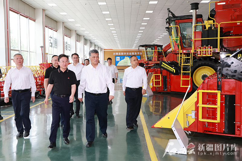5月25日,自治区党委书记、兵团党委第一书记、第一政委马兴瑞,自治区党委副书记、自治区主席艾尔肯·吐尼亚孜在沙雅钵施然智能农机有限公司,察看产品展示,了解企业发展情况。石榴云/新疆日报记者 崔志坚摄