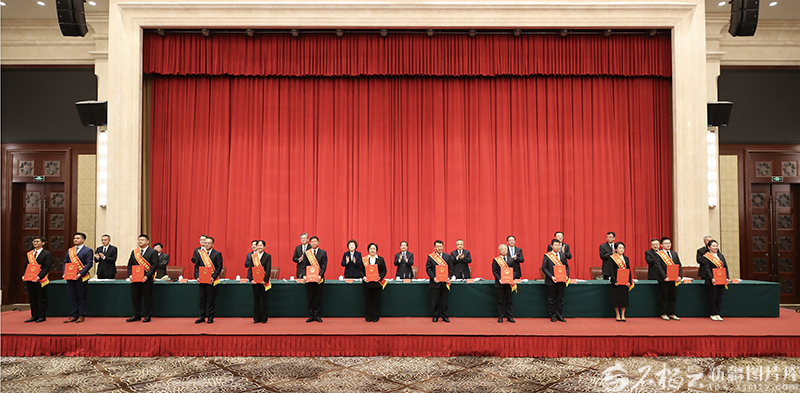 11月17日,在自治区科技创新大会上,自治区党委书记陈小江,自治区党委副书记、自治区主席艾尔肯·吐尼亚孜等领导为获奖代表颁奖。天山网-新疆日报记者 谢龙摄