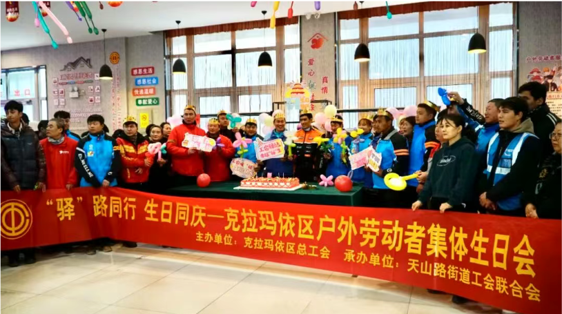 克拉玛依区户外劳动者集体生日会。(图片据克拉玛依工会微信公众号)