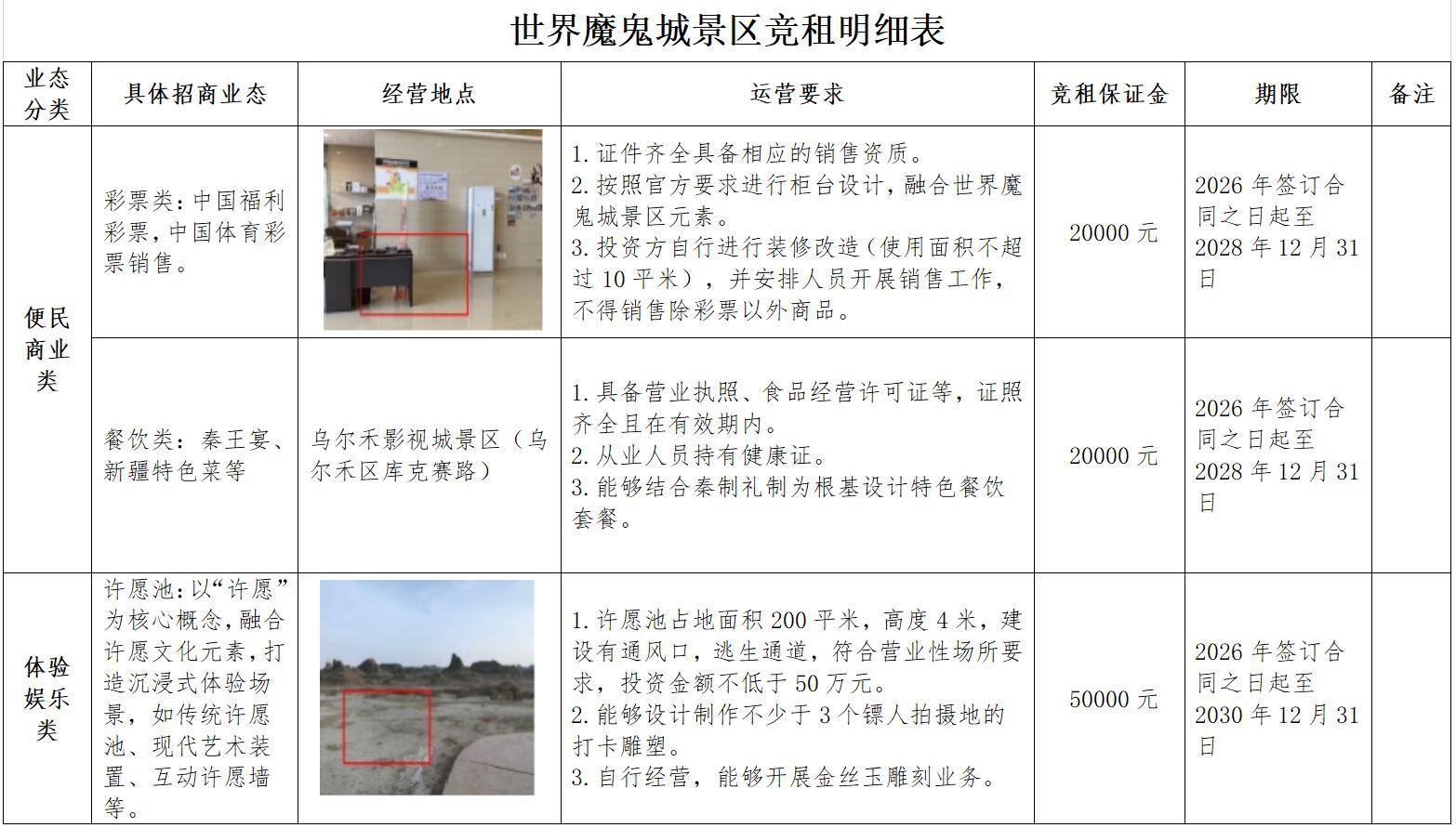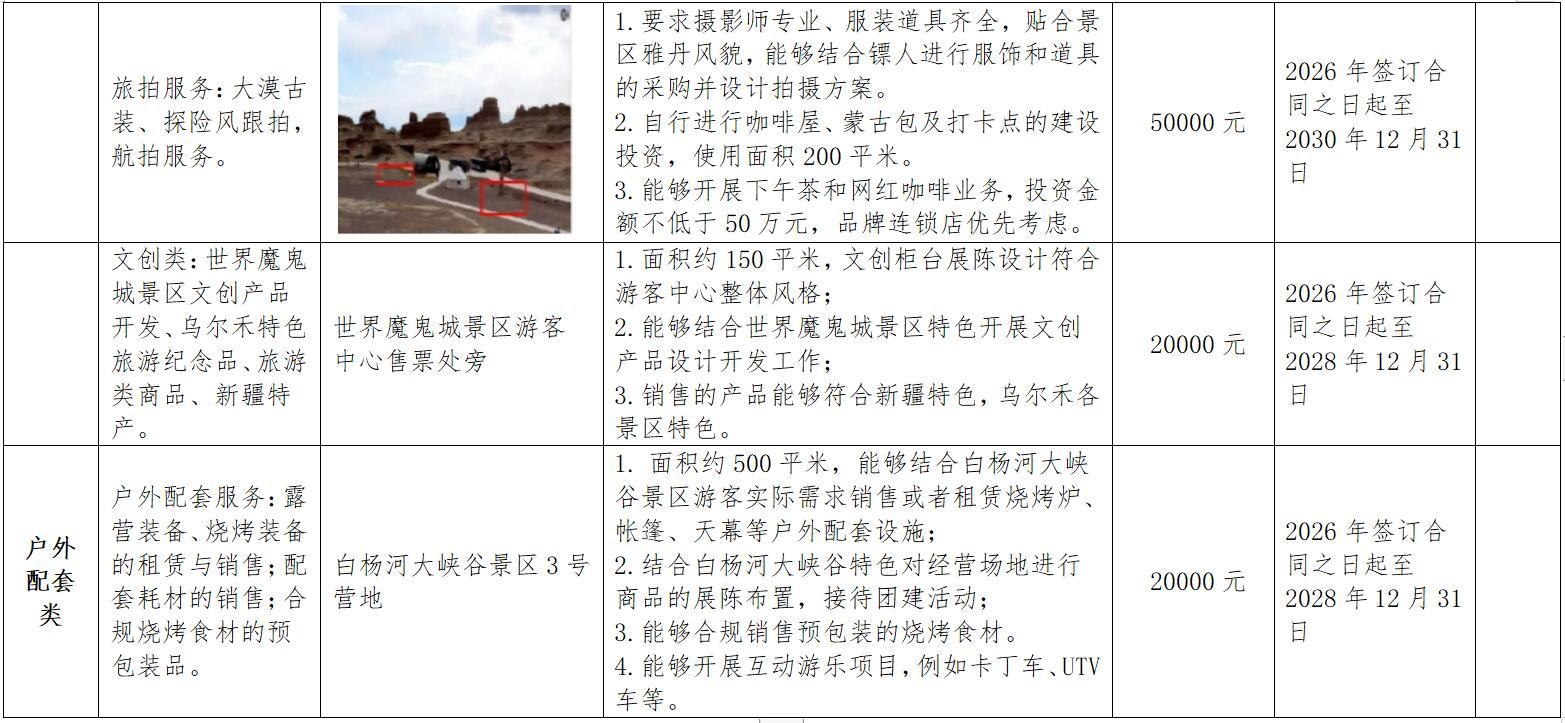克拉玛依魔鬼城文化旅游开发有限责任公司现就世界魔鬼城景区经营性项目面向社会公开竞租,现将有关事项公告如下: