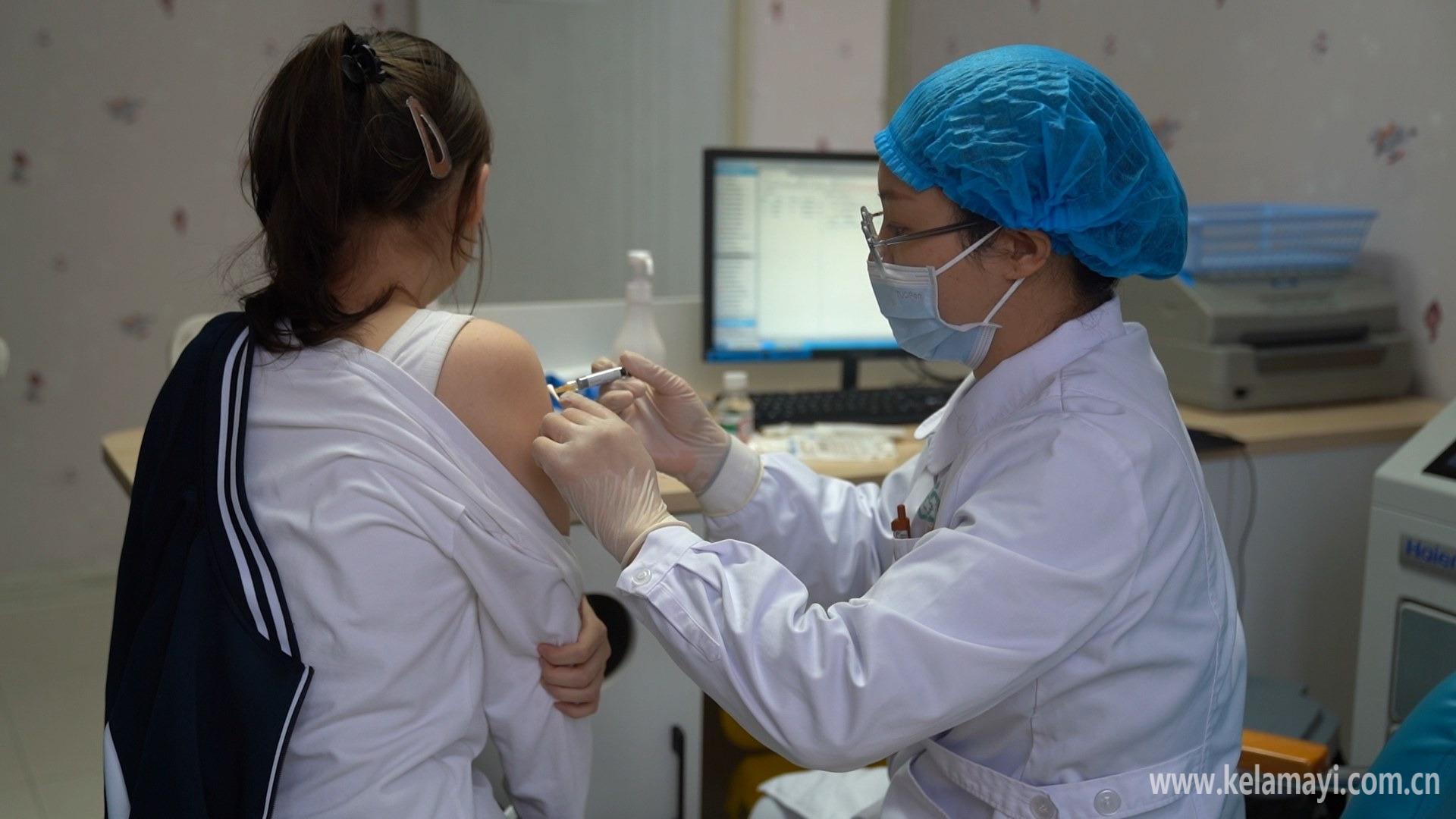 医生为自愿接种的在校女生接种HPV疫苗。唐瑞翔 摄
