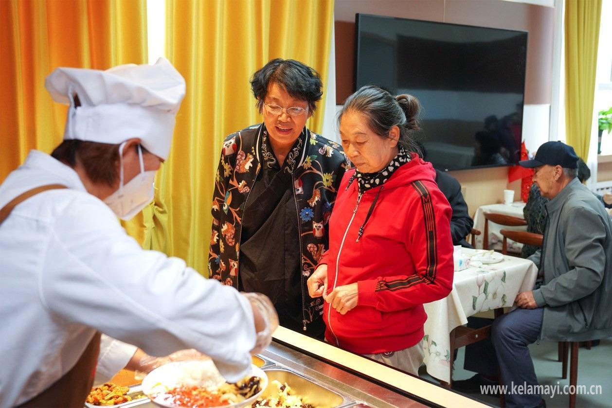 克拉玛依区朝阳小区中心食堂,老人们在排队取餐。克拉玛依融媒记者 非尔代维斯·热夏提 摄
