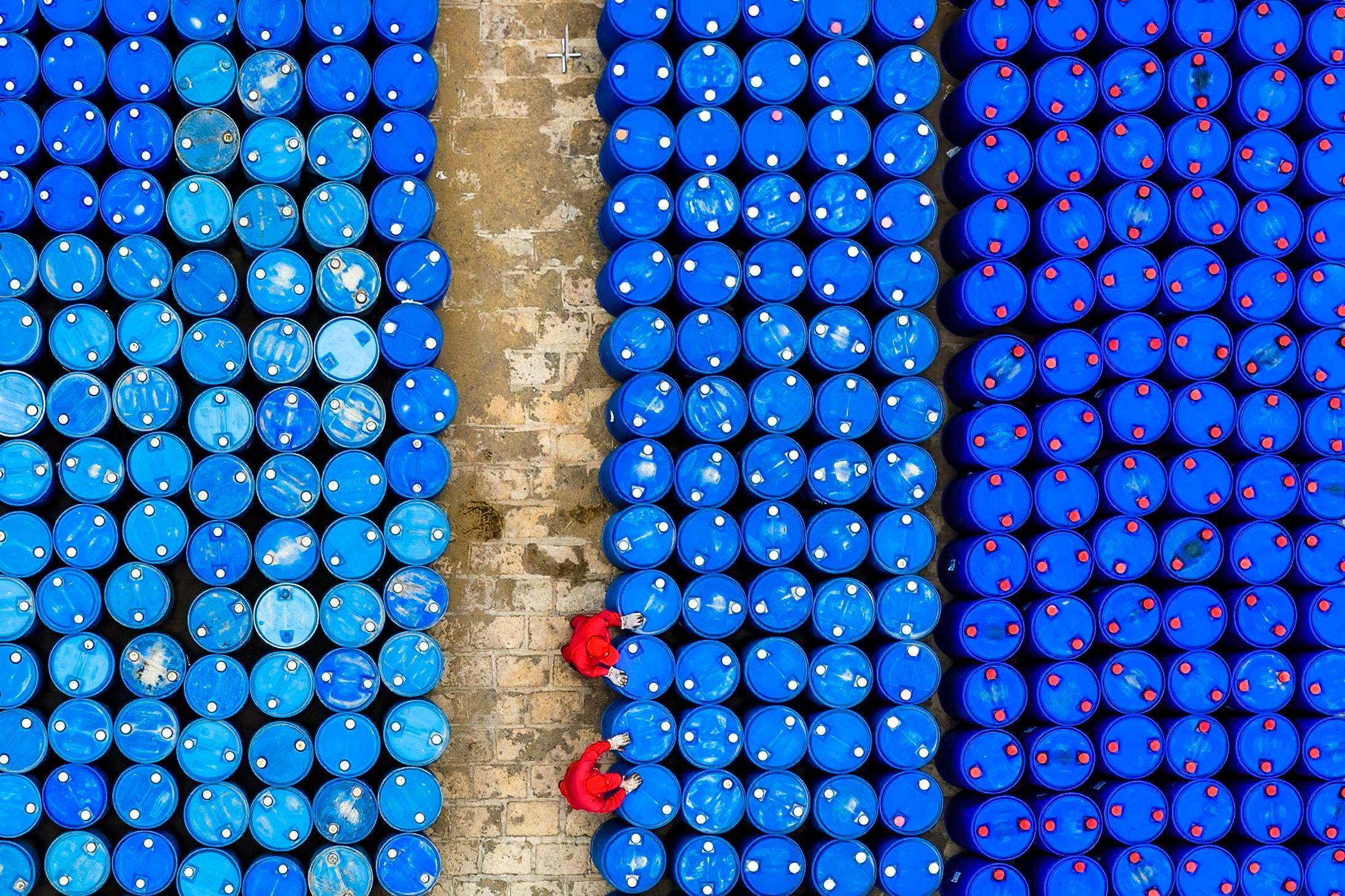 新科澳公司技术人员清点即将运往新疆油田公司生产现场的化工助剂。克拉玛依融媒记者 闵勇 摄