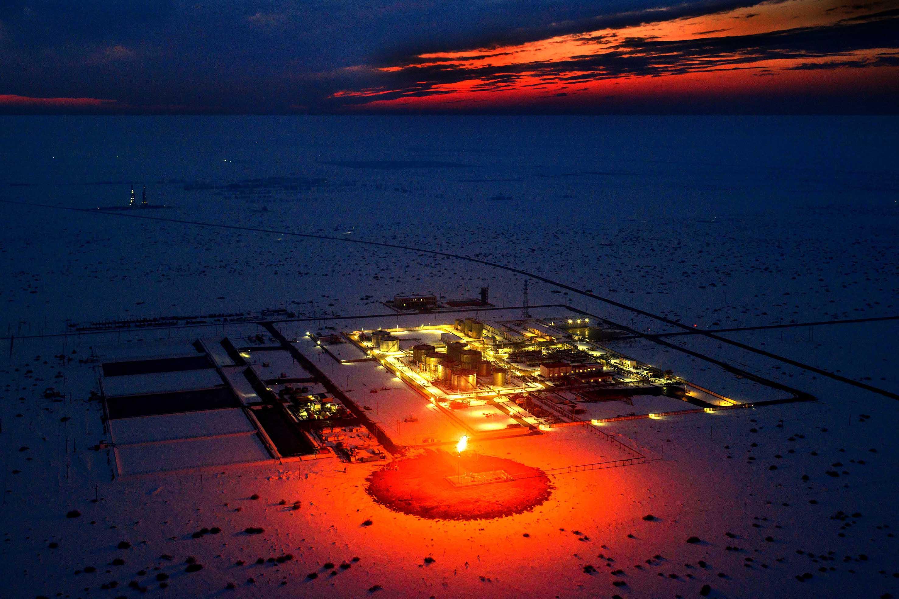 2026年2月20日,示范区页岩油联合站正在处理不断采出的原油。