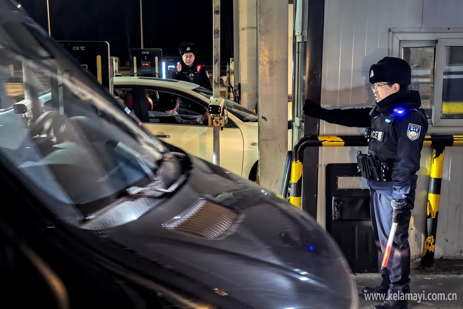 2月22日,市公安局克拉玛依区分局特警大队民警在城北检查站开展夜间执勤。克拉玛依融媒记者 闵勇 摄