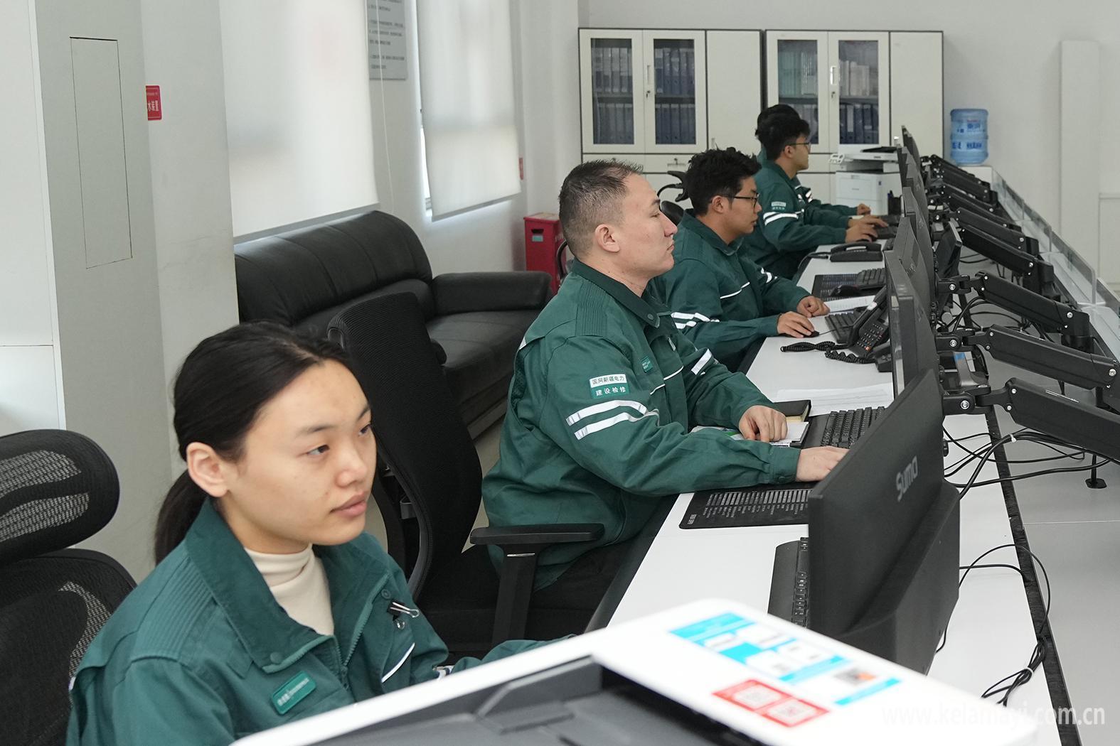 2月17日,国网克拉玛依供电公司电力调度控制中心保供人员坚守岗位。克拉玛依融媒记者 闵勇 摄