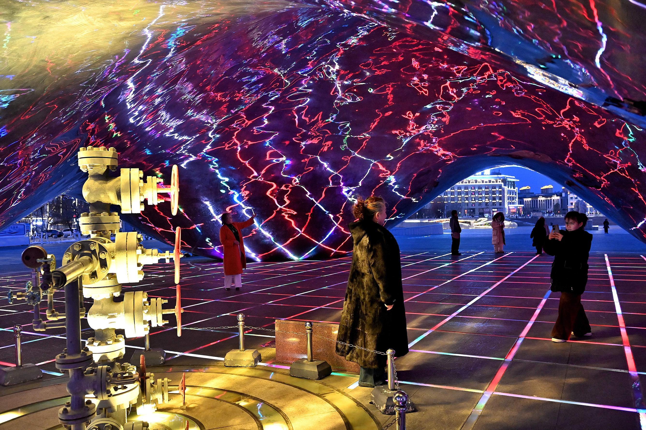 2月22日,游客在克拉玛依区克一号井景区“大油泡”内部观光留影。克拉玛依融媒记者 努尔夏提·尼加提 摄