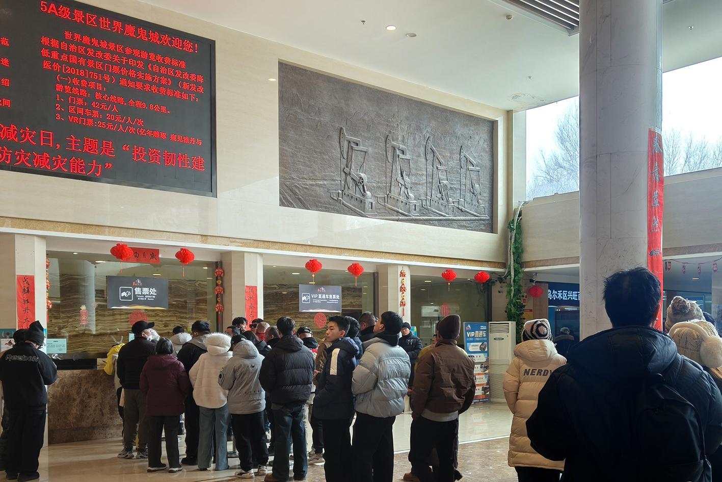 2月16日,乌尔禾区世界魔鬼城景区游客服务大厅,游客等候入场。丁珍珍 摄