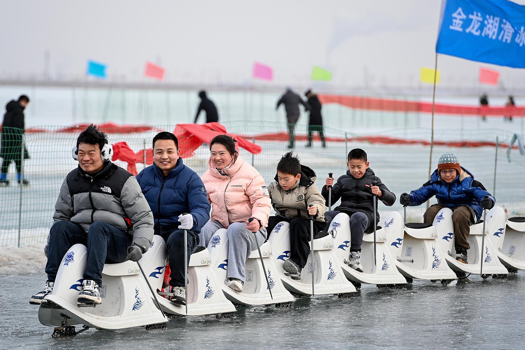 2月22日,大年初六,市民在克拉玛依区金龙湖景区享受冰上运动的乐趣。克拉玛依融媒记者 努尔夏提·尼加提 摄