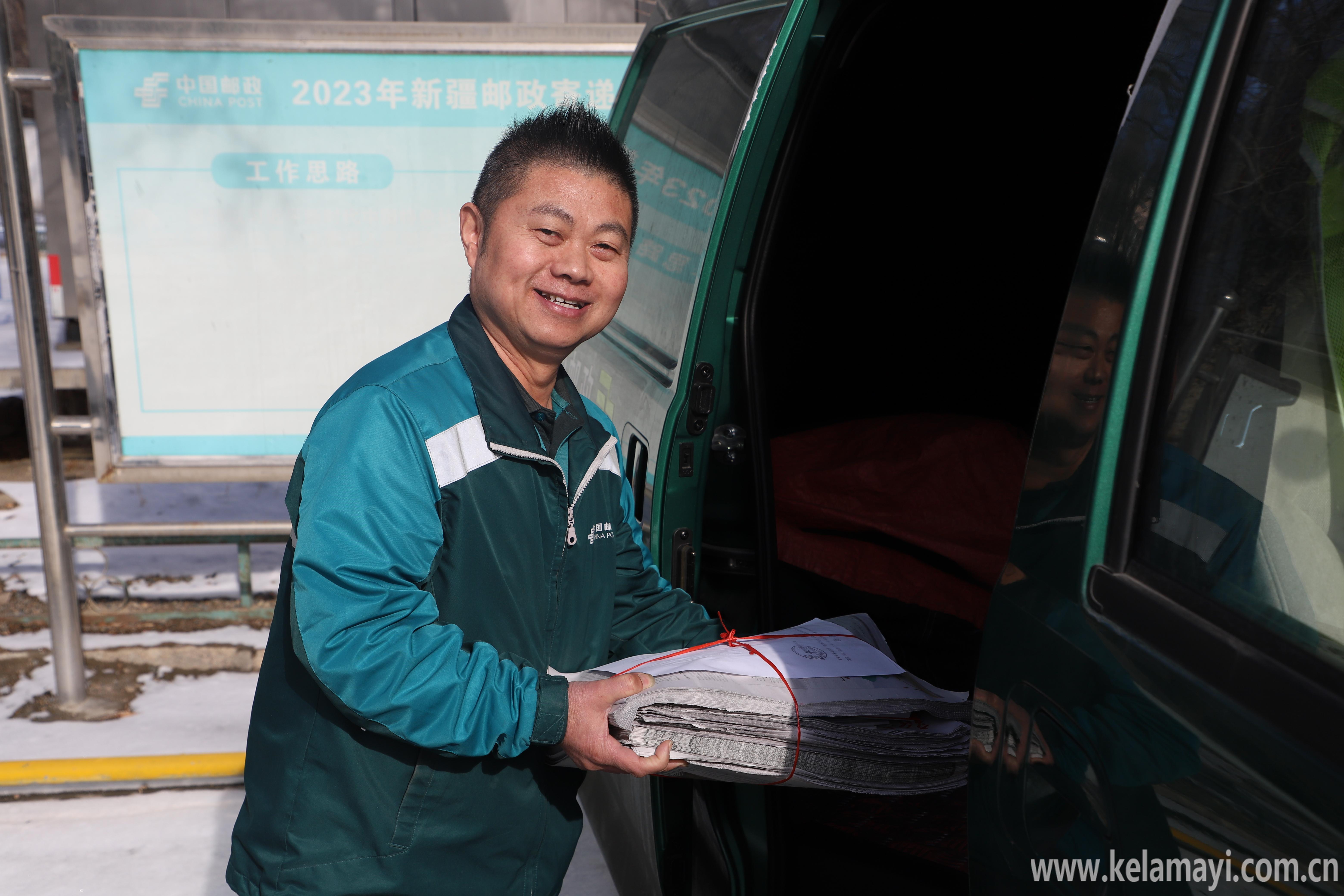 春节期间,快递员杨武财坚守岗位。(图片由克拉玛依市邮政分公司提供)