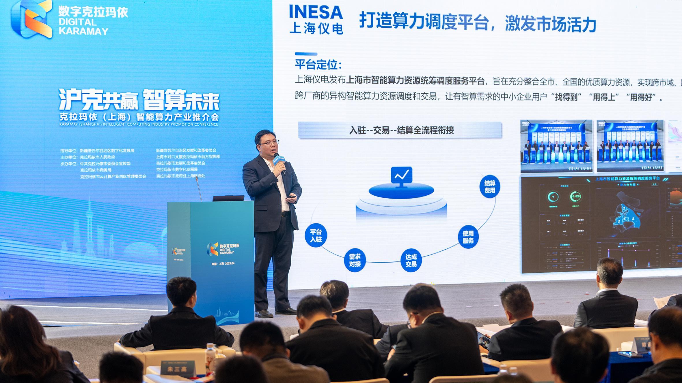 2025年4月,在克拉玛依(上海)智能算力产业推介会上,行业专家作主旨演讲。克拉玛依融媒记者 闵勇 摄