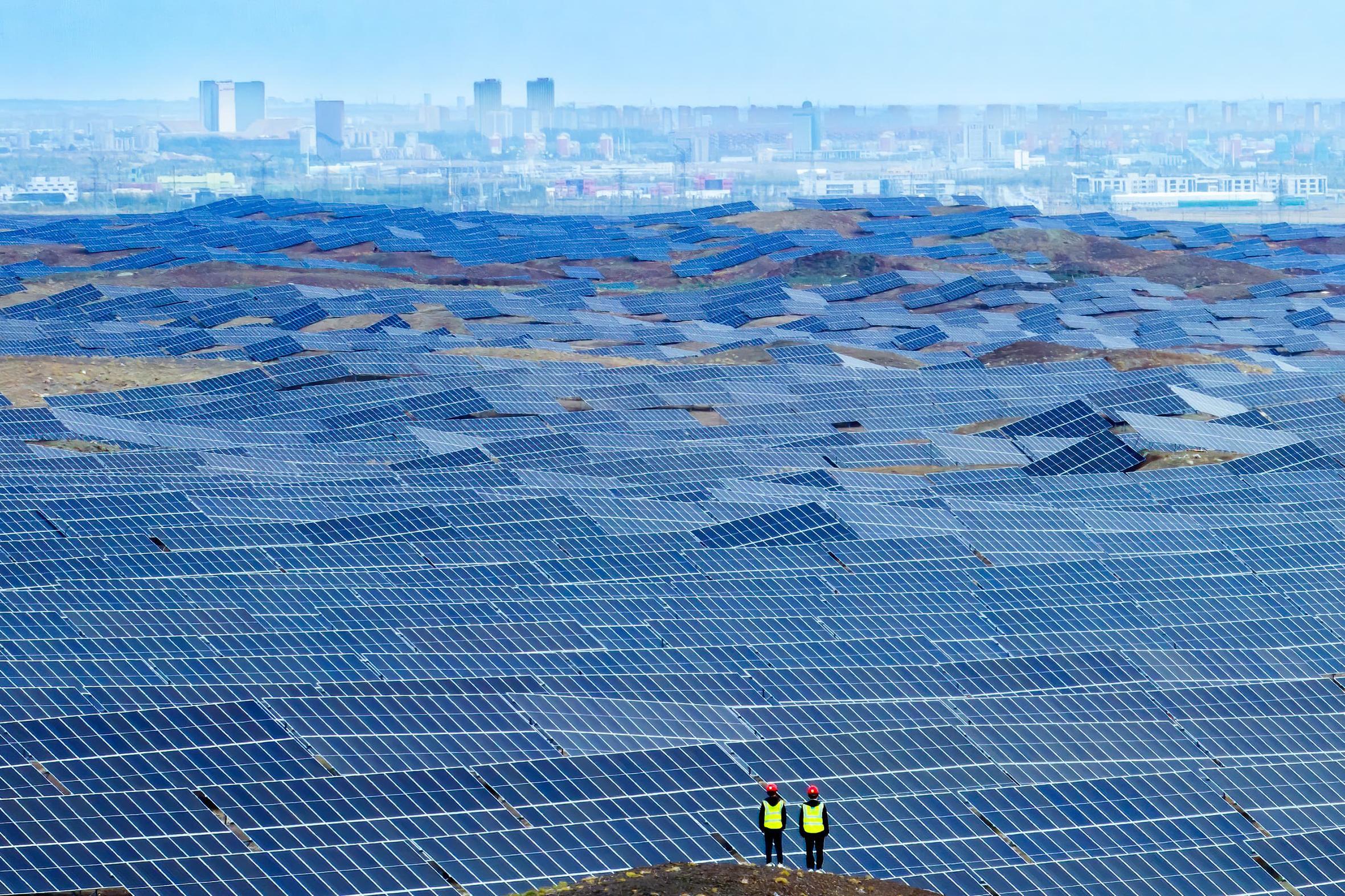2025年9月,从空中俯瞰克拉玛依30万千瓦光伏算电协同一体化项目光伏区。克拉玛依融媒记者 闵勇 摄