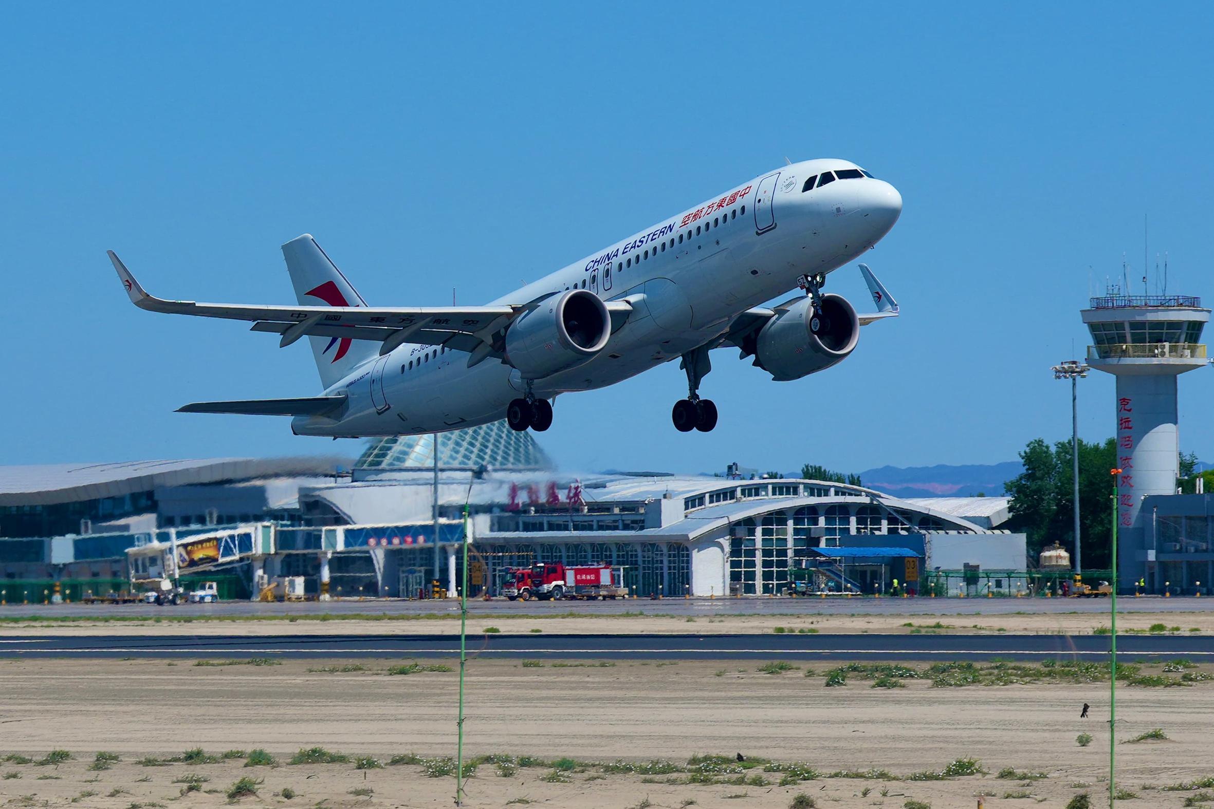 2023年7月,从克拉玛依古海机场起飞的东方航空MU6296航班腾空而起,经西安飞往上海。克拉玛依融媒记者 崔文娟 摄