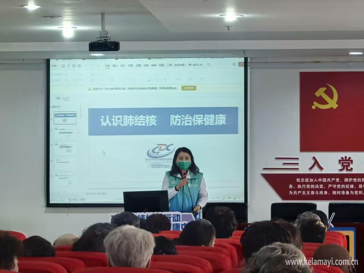 此前,为扩大宣传覆盖面,针对不同人群特点,我市已开展了一系列活动。3月18日,市疾病预防控制中心(卫生监督所)联合克拉玛依区疾控中心(卫生监督所)及新疆第二医学院志愿者,走进克拉玛依区老干部活动中心,开展了以“关爱老年健康 科学防治结核”为主题的专场宣传活动。