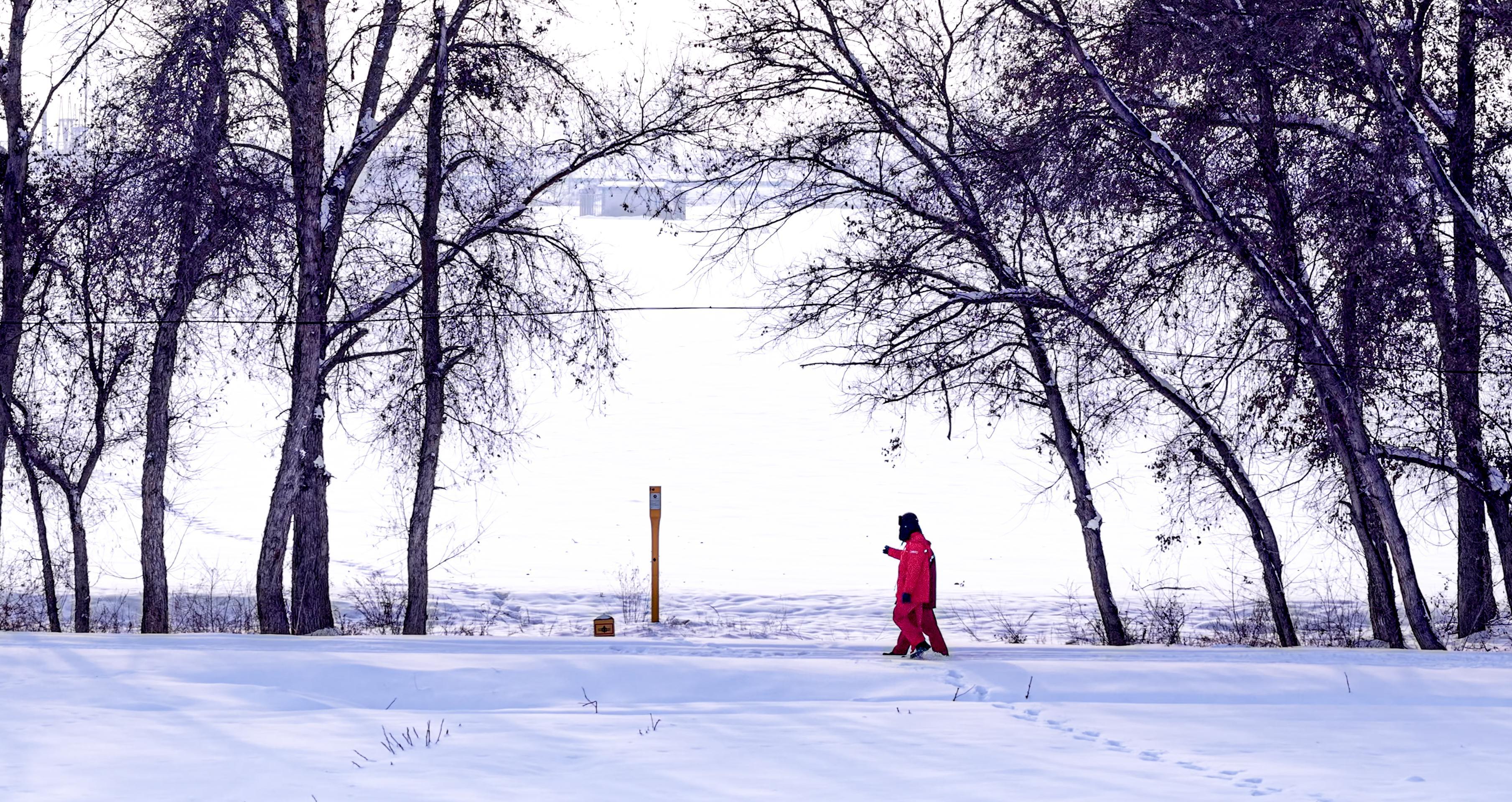 员工日复一日地在玛河桥下巡检,已将厚厚的积雪踩出一条小道。新疆石油报记者 卢杰铭 摄