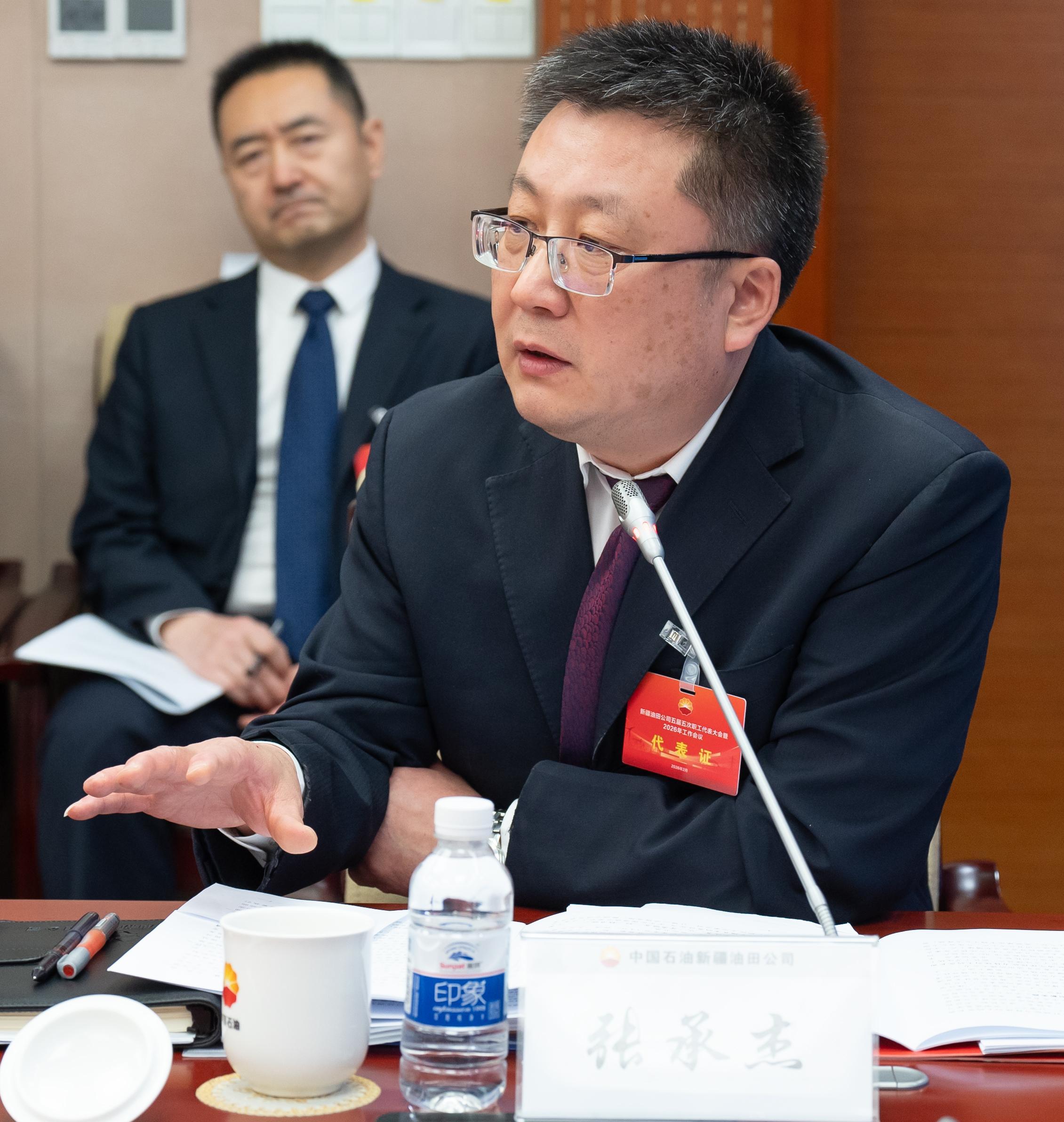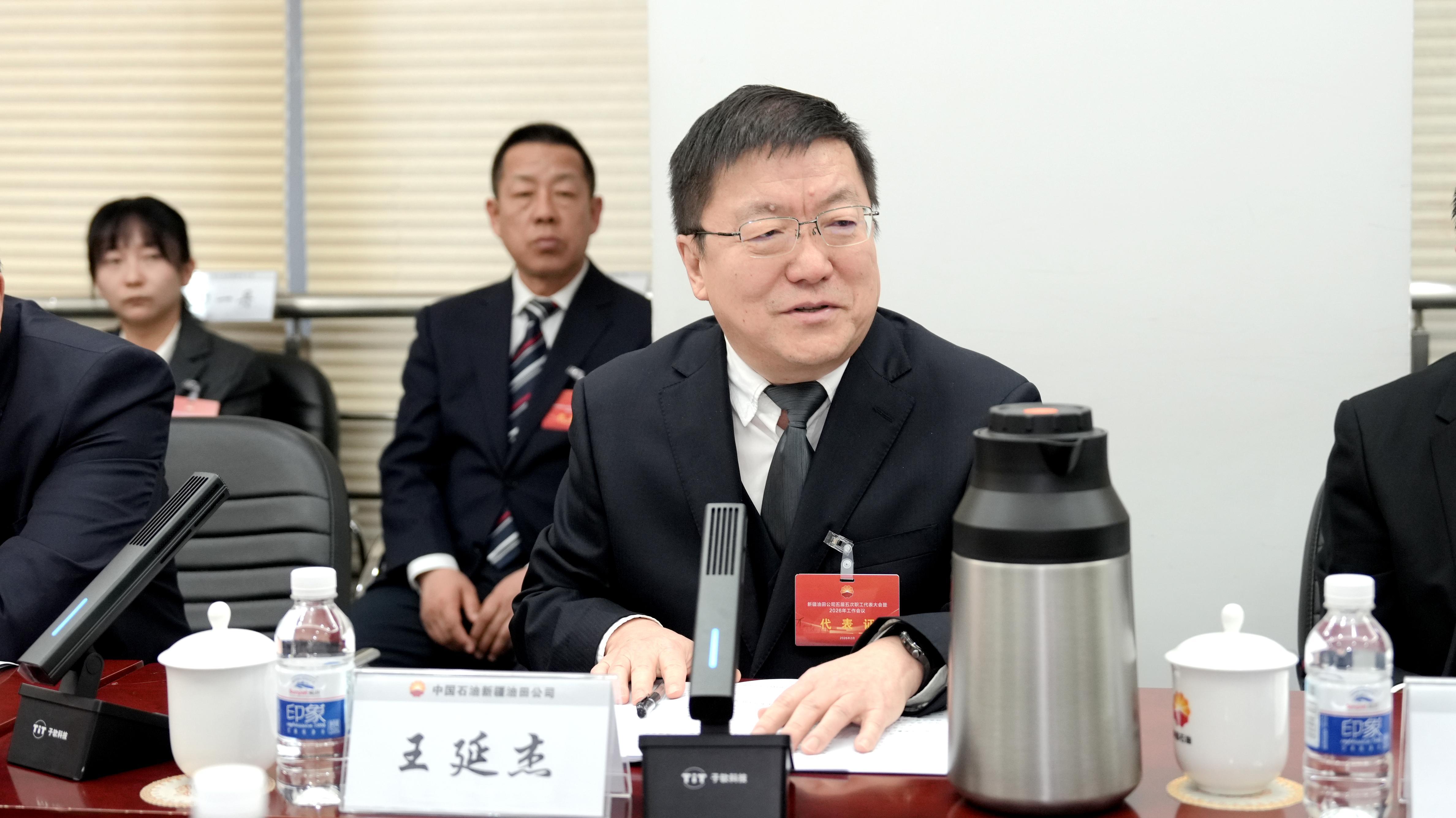 第三代表团代表就新疆油田公司五届五次职工代表大会暨2026年工作会议主题报告进行发言。新疆石油报记者 王涛 摄