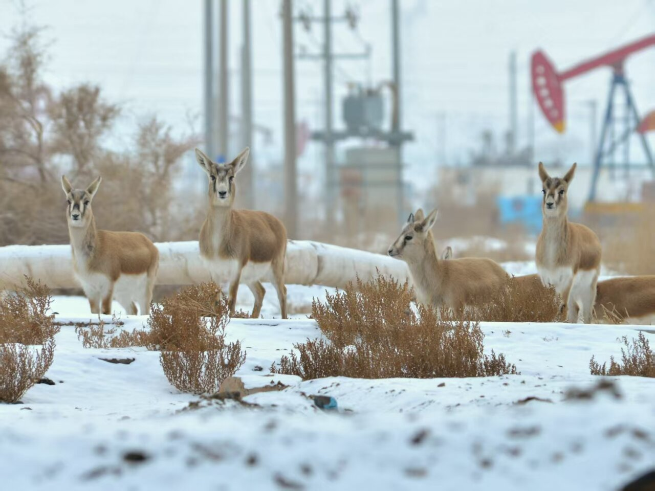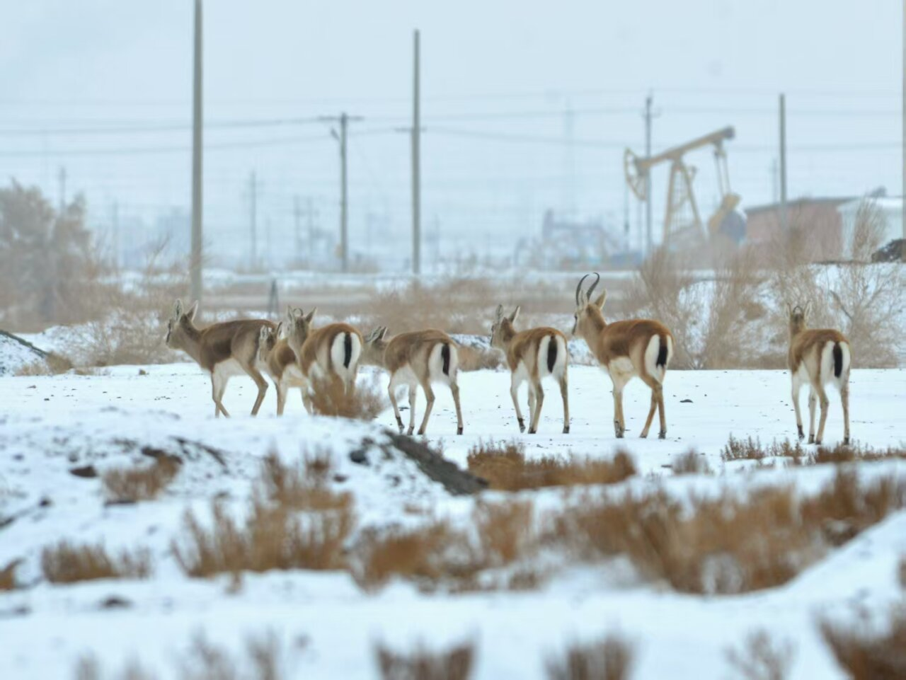 戈壁滩上,巡井车旁,一群鹅喉羚结伴随行,构成一幅灵动的生态画卷。 近日,采油一厂(红山公司)特种技术采油作业区采油三班员工岳志勇在例行巡井时,偶遇这一场景。这群“戈壁精灵”不远不近地跟随,不仅为单调的巡井路增添了别样惊喜,也从侧面印证了新疆油田周边生态环境持续向好,野生动物种群日益增多的变化。
