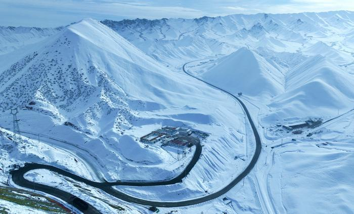 准东钻井公司XD80501钻井队生活营地静静矗立在雪山间。周建玲 摄