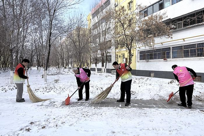 3月4日,白碱滩区万向社区退役军人服务站组织志愿者开展志愿扫雪活动,退役军人积极参与其中,大家以实际行动清理社区路面积雪,为辖区居民营造安全、畅通的出行环境,让雷锋精神在春日里落地生根。 冯雪丽 摄