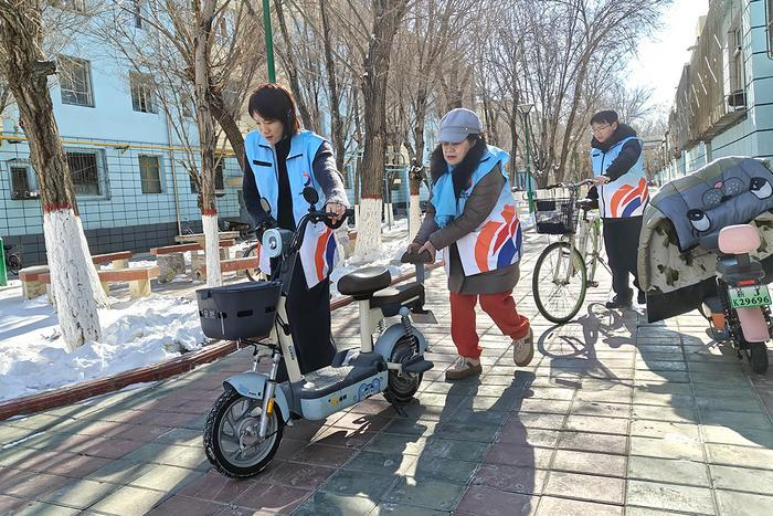 3月3日,志愿者们对小区里乱停乱放的自行车、电动车进行集中整治。近期,白碱滩区友好社区组织开展了“学雷锋 文明实践在行动”主题志愿服务活动,组织辖区党员、联户长、青年志愿者等多方力量,以实际行动践行新时代志愿服务精神。韩园园 摄
