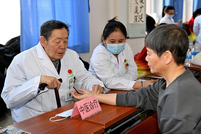 3月5日,志愿者为居民提供义诊服务。当天,市退役军人志愿服务队在克拉玛依区黎明红旗社区退役军人服务站开展学雷锋活动。克拉玛依融媒记者 努尔夏提·尼加提 摄