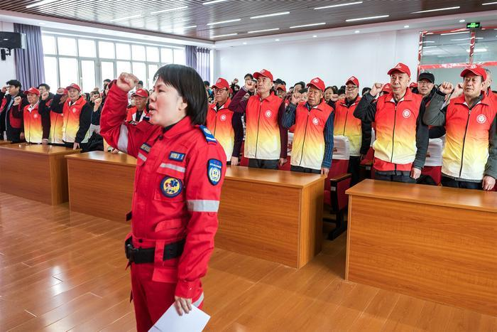 3月5日,克拉玛依区南泉社区“铁老汉”志愿服务协会志愿者集体宣誓,将常态化开展学雷锋志愿服务,积极带动家人、亲友和身边居民共同参与,让雷锋精神深入人心、代代传承。田国建 摄
