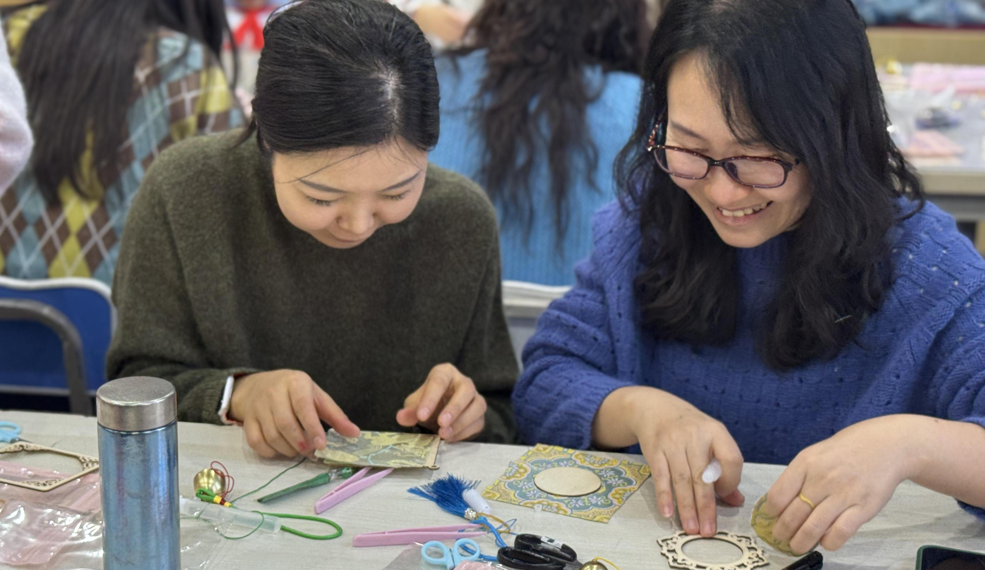为丰富女职工精神文化生活,传承中华优秀传统文化,近日,康城小学工会组织开展了“非遗·宋锦”手工制作体验活动。活动现场暖意融融、雅致温馨,全体女教师以匠心守初心,在一针一线、一裁一缝间感受非遗之美,共庆属于自己的节日。