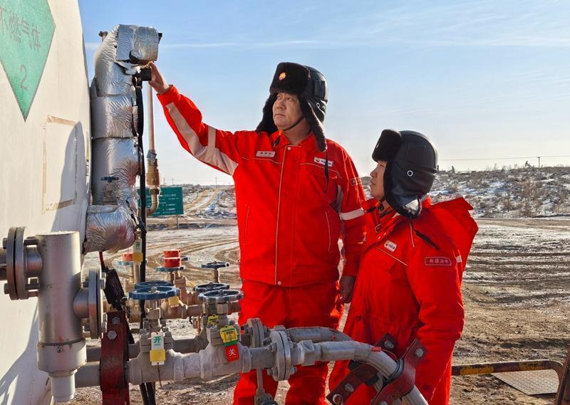 陆梁油田作业区员工核验开井条件,确保每一口井复产合规、安全、高效。(图片由陆梁油田作业区提供)