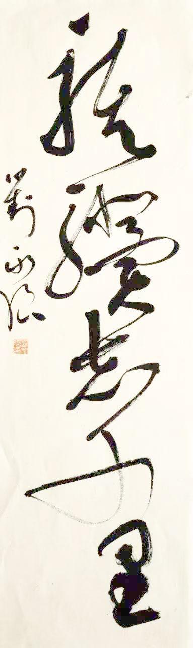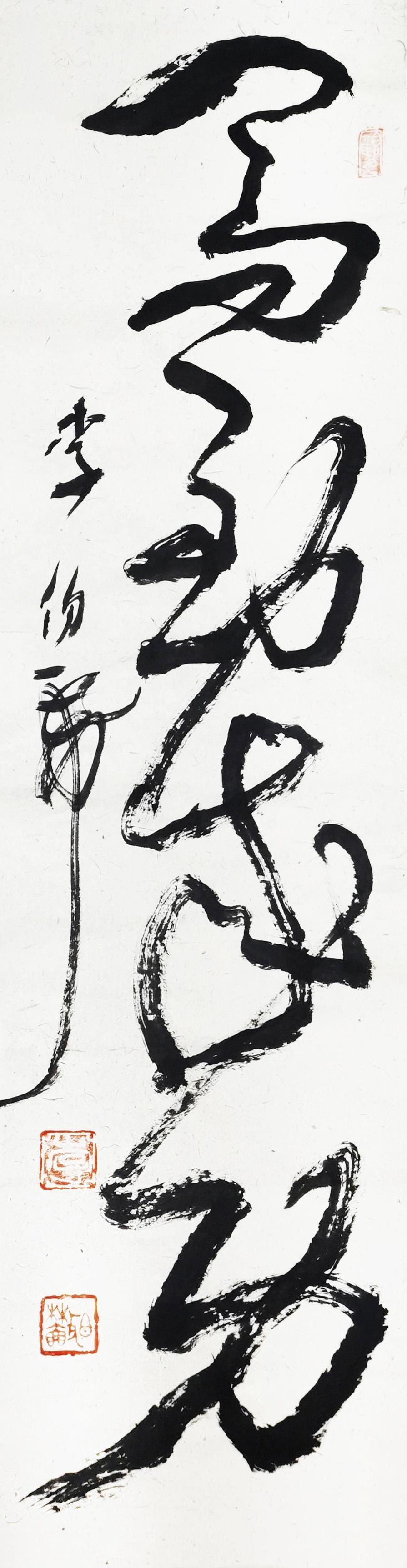 创作思路:《骐骥志千里》以连绵、缠绕的明清调草书笔势以呼应骏马奔腾之势,线条力求内敛且有张力,墨色浓淡、字形大小、欹正、疏密关系均以字势和书写的节奏变化呈现,力求个人性情挥洒和作品的视觉张力。